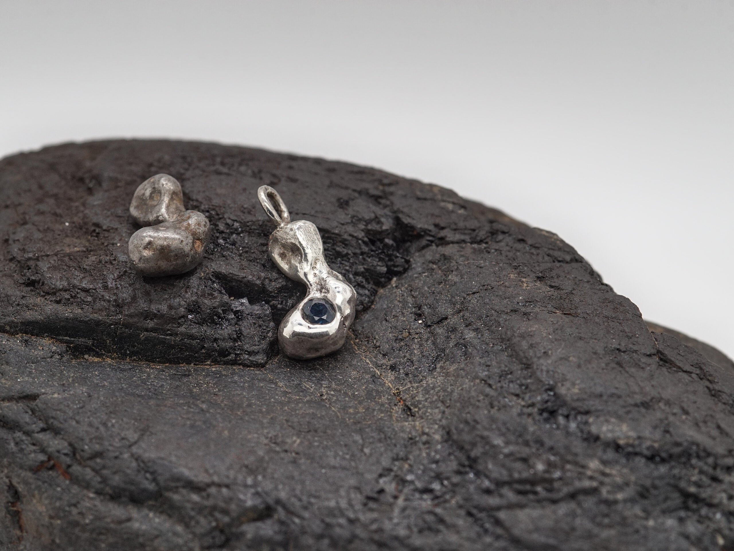 Inspiriert von Stahlfragmenten industrieller Herkunft. Jeder Anhänger ist limitiert auf 50 Stück, handwerklich gefertigt, mit oder ohne Edelstein erhältlich. Lieferung ohne Kette.